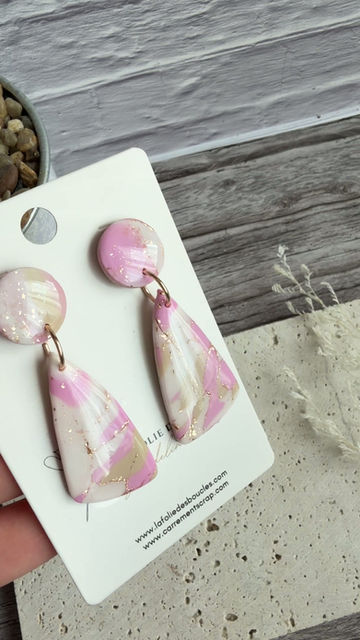 ✨🌸🤍 Boucles d’oreilles pendantes géométriques – Rose marbré, beige, blanc & do